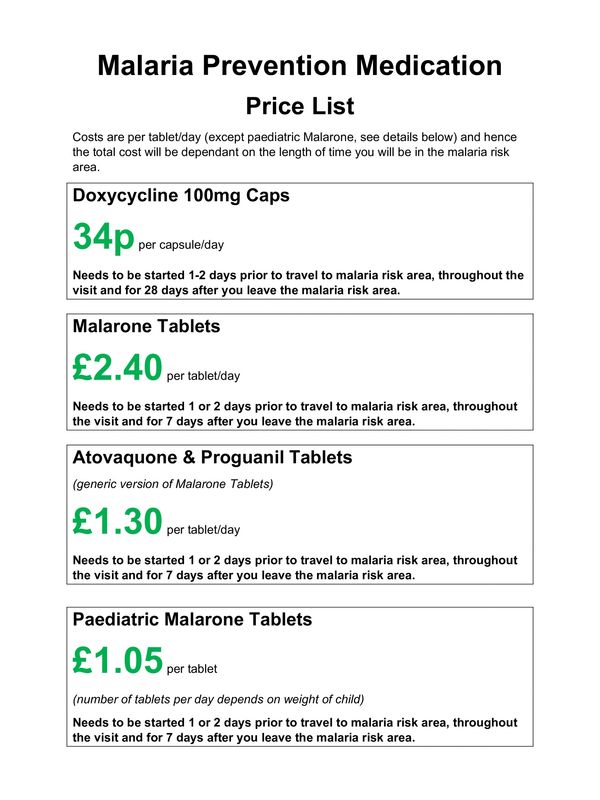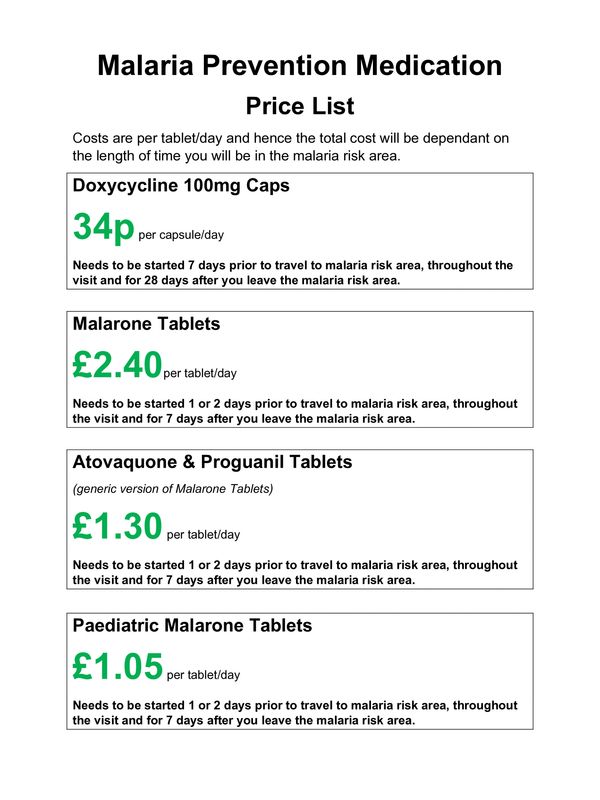 Prices are per dose and based on the number of tablets/capsules required for based on your travel dates.
