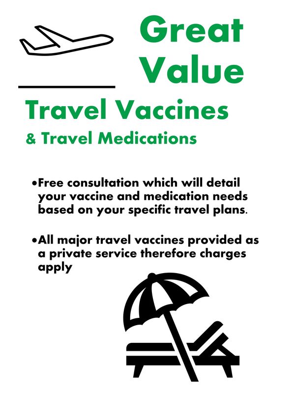 Please note we may not have all travel vaccines in stock so please contact us in advance of booking a consultation if vaccines required at your first appointment.