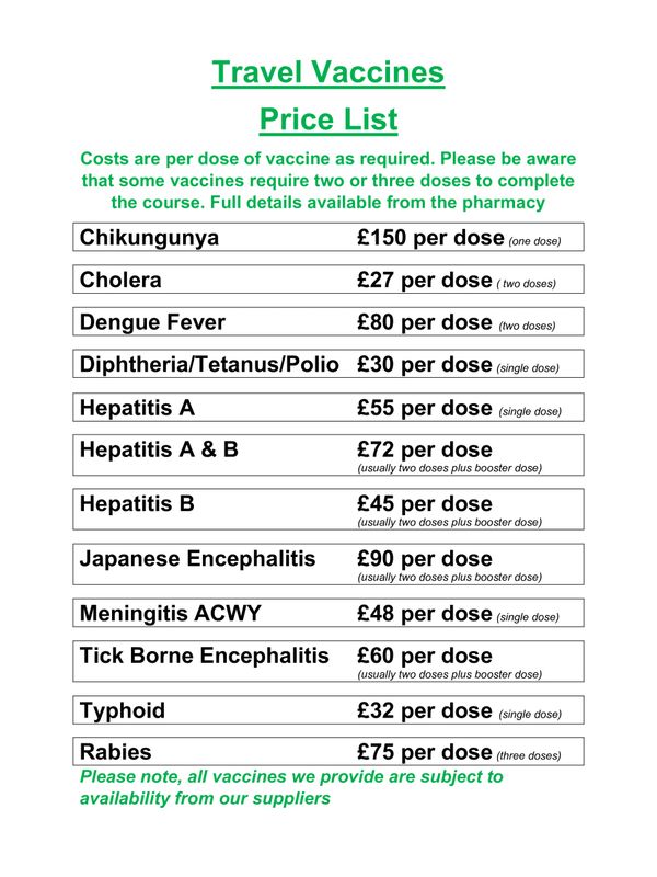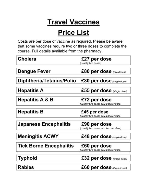 Prices are per dose and some vaccines do require more than one dose. Please speak to the pharmacist for details.